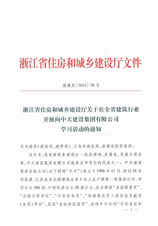《浙江省住房和城乡建设厅关于在全省建筑行业开展向BBIN宝盈建设集团有限公司学习活动的通知》